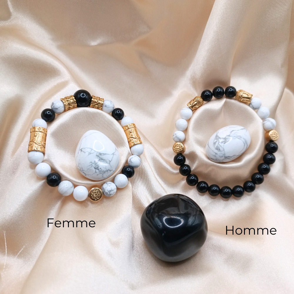 Composés de : Howlite blanche 8 mm , Obsidienne noire 8 mm et 12 mm.