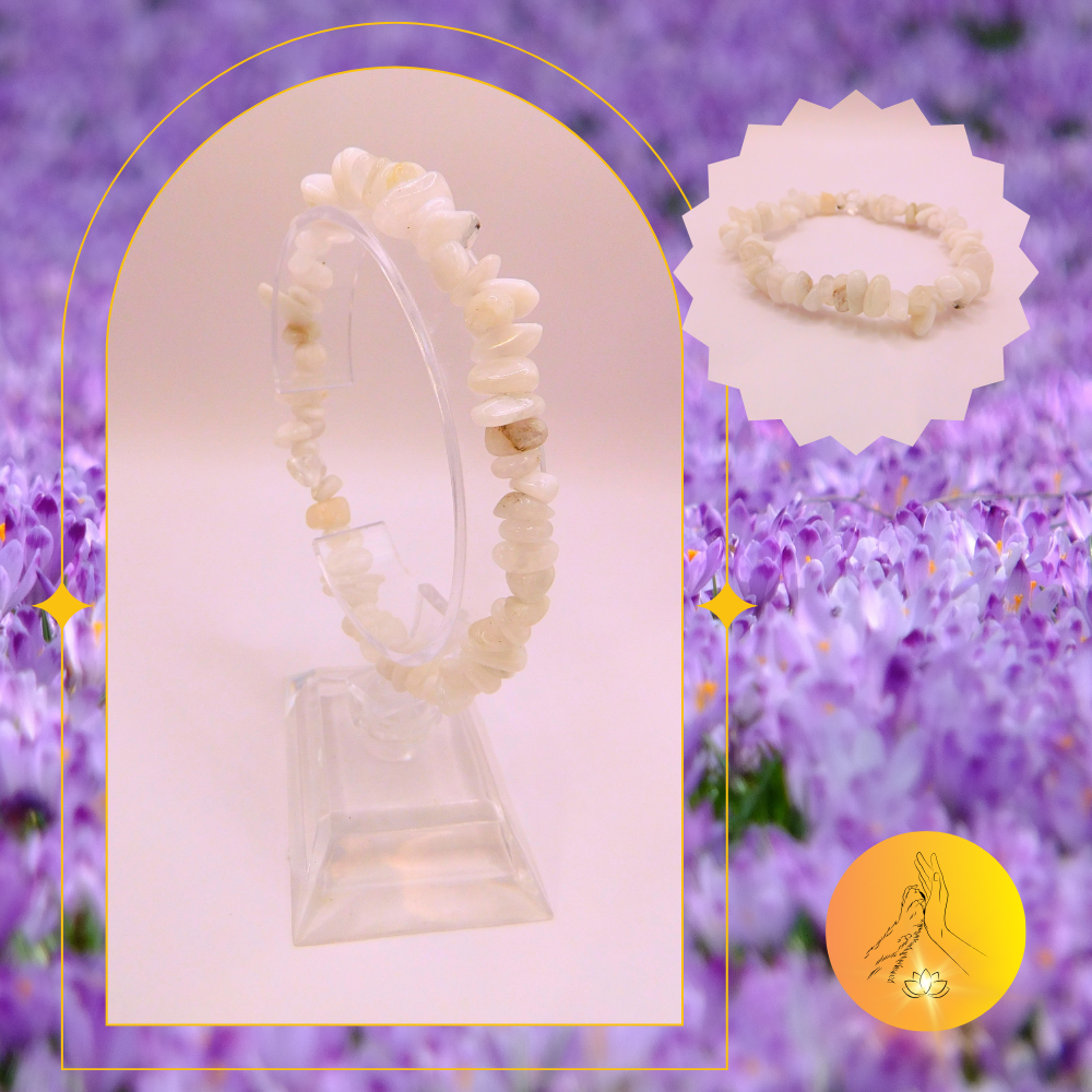 Bracelet en pierres de lune bleutée.