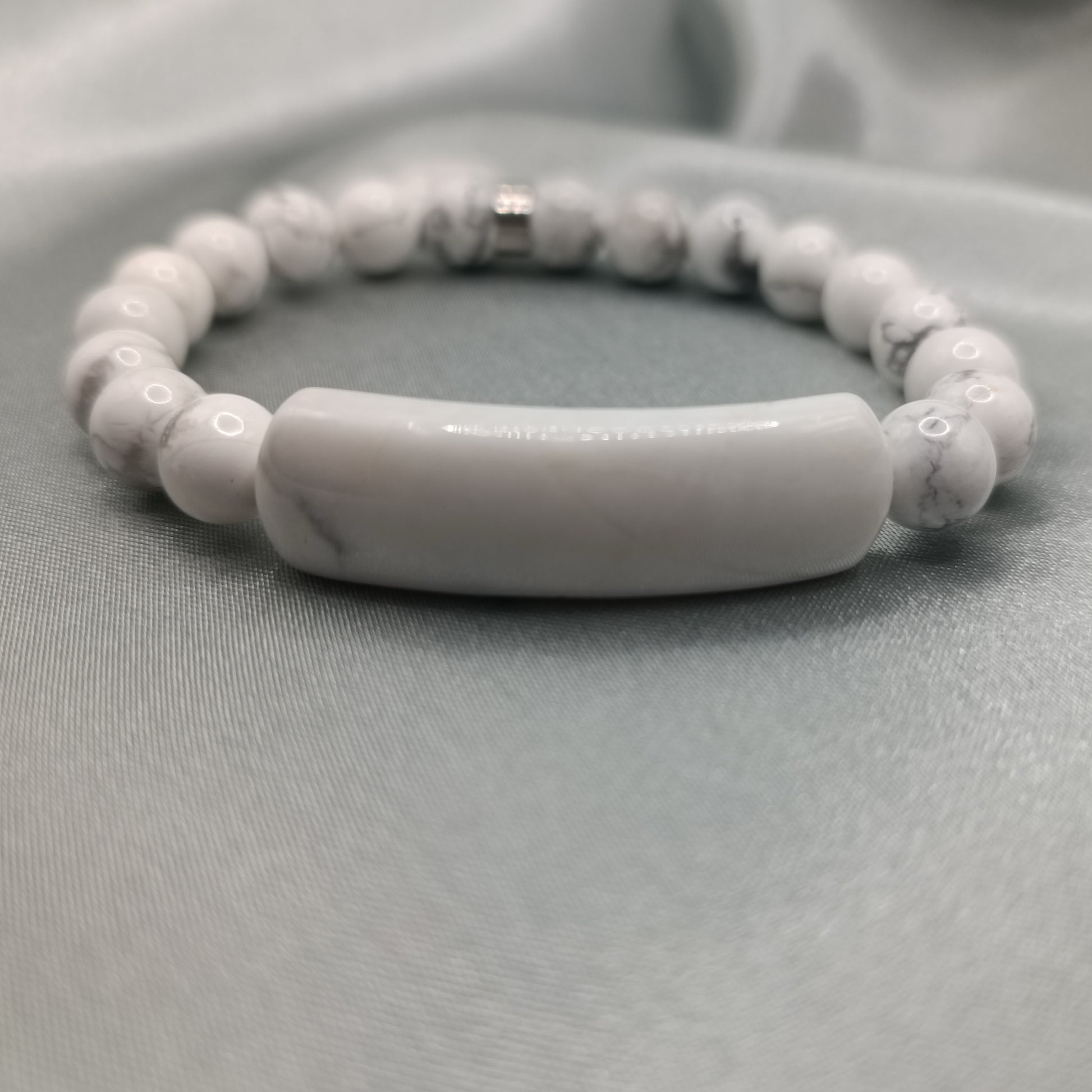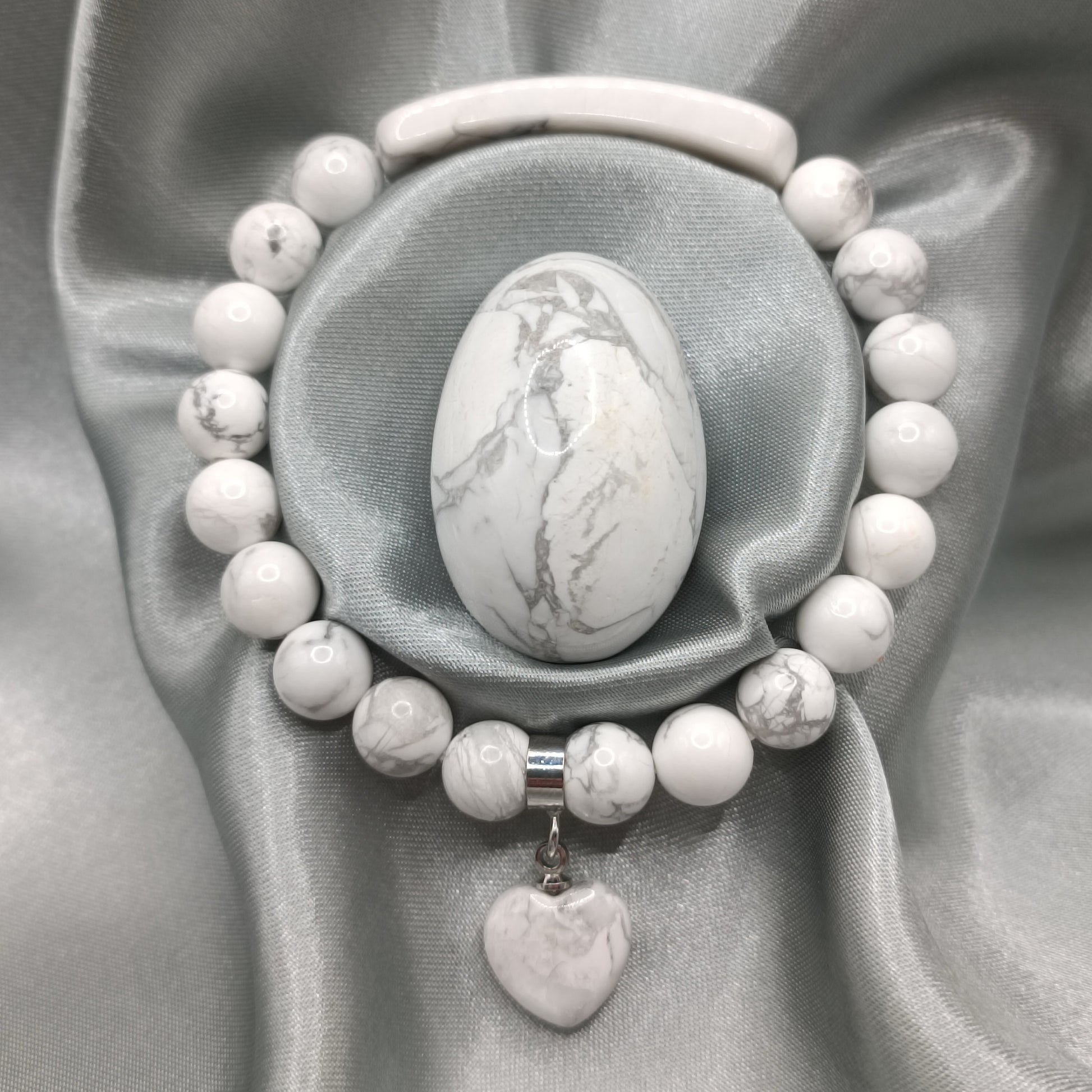 Bracelet en perles d'howlite blanche de 8 mm avec un pendentif en forme de coeur