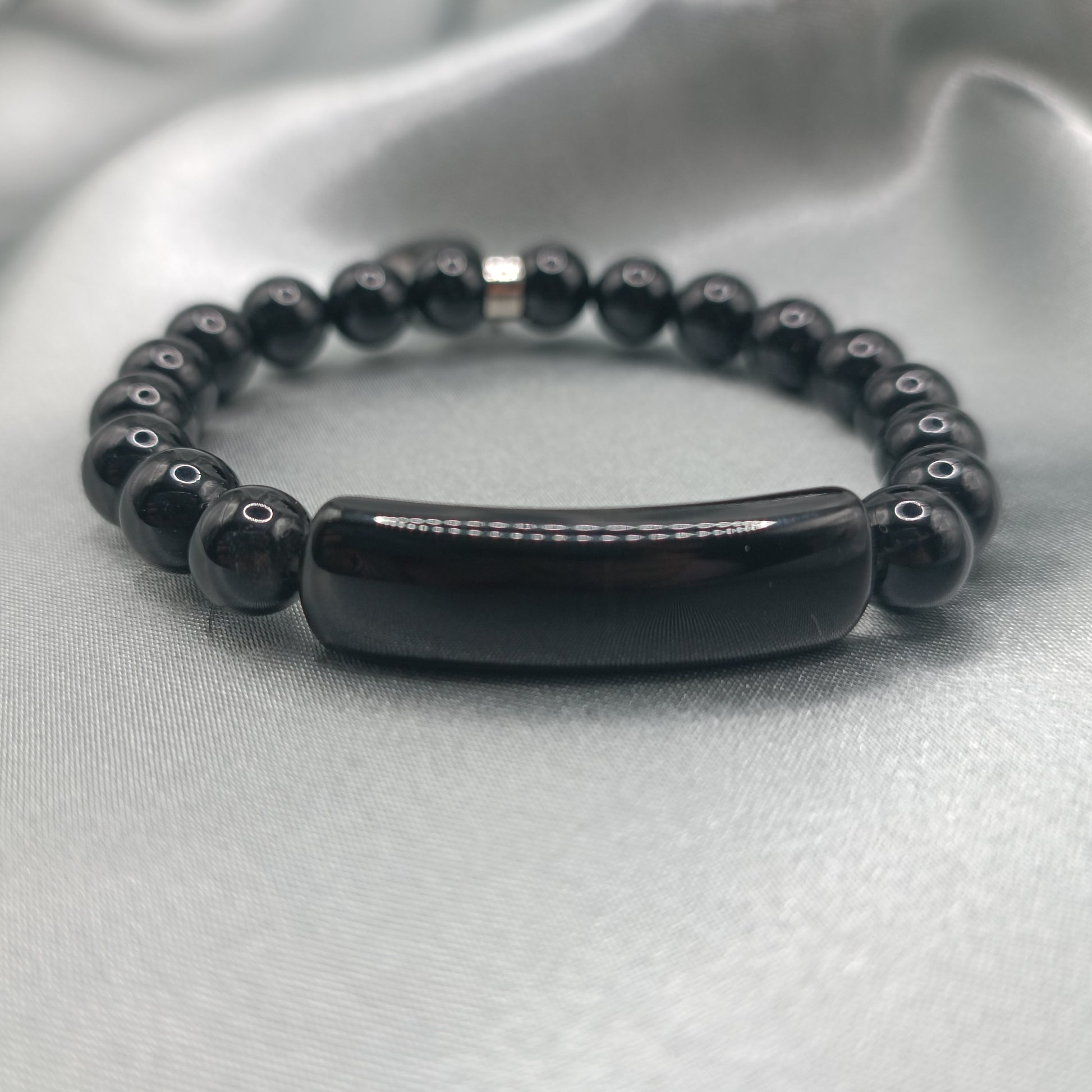 Bracelet en perles d'obsidienne noire de 8 mm avec un pendentif en forme de cœur