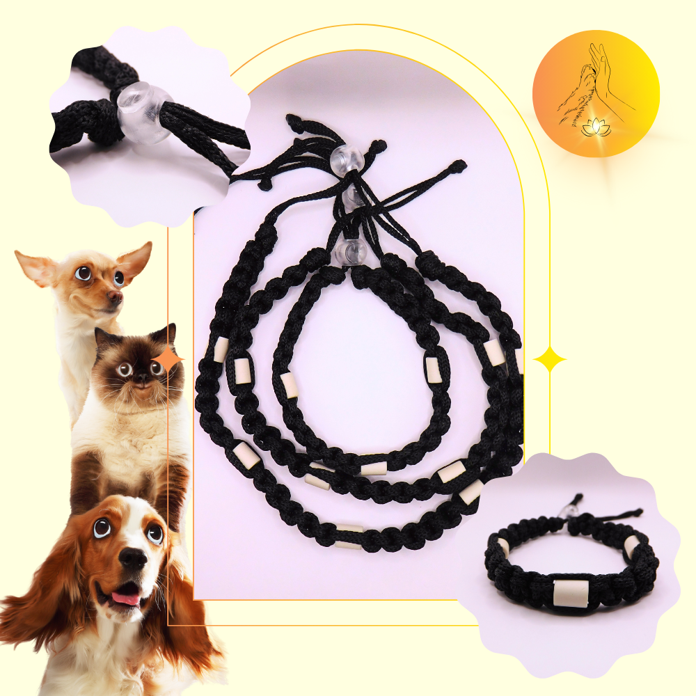 Colliers anti-puces et anti-tiques fabriqués de manière artisanale en paracorde avec un fil de couleur noire et composé de perles en céramique.