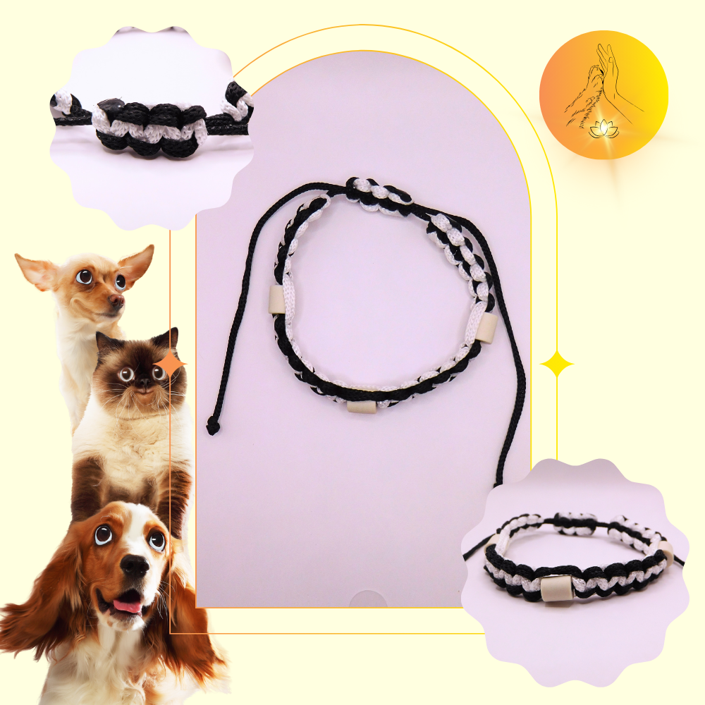 Colliers anti-puces et anti-tiques fabriqués de manière artisanale en paracorde avec des fils de couleurs blanc et noir et composé de perles en céramique.