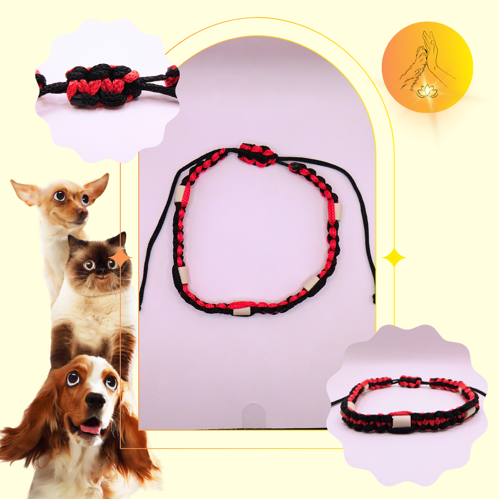 Colliers anti-puces et anti-tiques fabriqués de manière artisanale en paracorde avec des fils de couleurs noir et rouge et composé de perles en céramique.