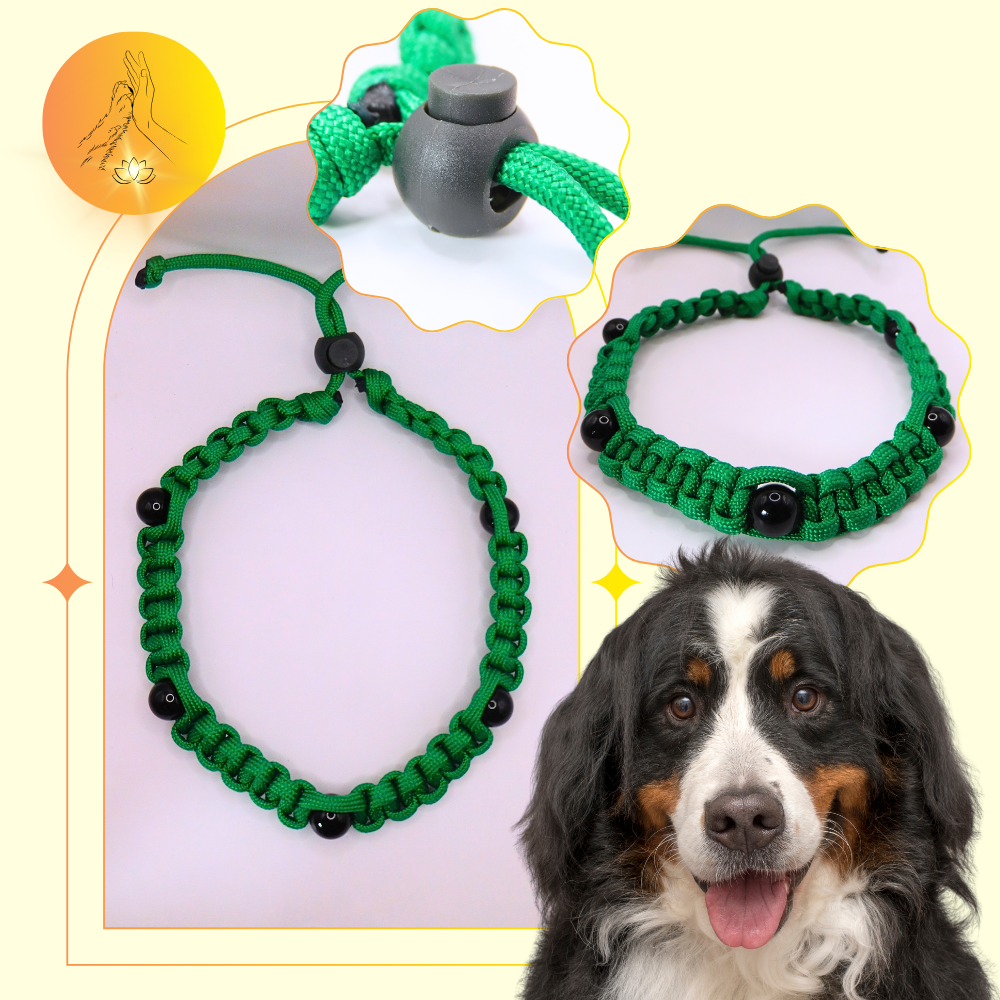 Colliers thérapeutiques en paracorde de couleur verte et composés de perles d'obsidienne oeil céleste. Colliers réglables avec un fermoir en plastique.
