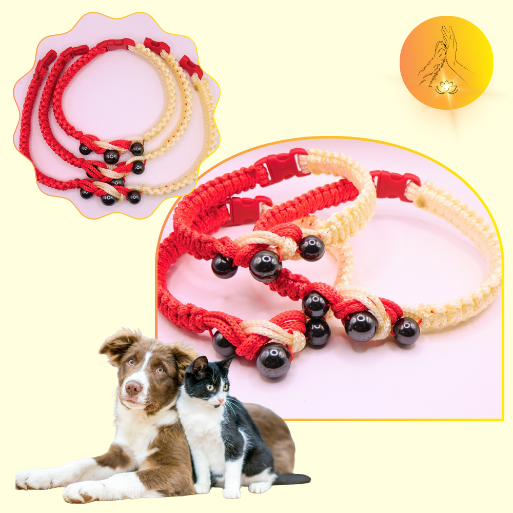 Colliers thérapeutiques en paracorde de couleurs rouge et vanille et composés de perles d'hématite. Colliers non réglables avec un fermoir en plastique.