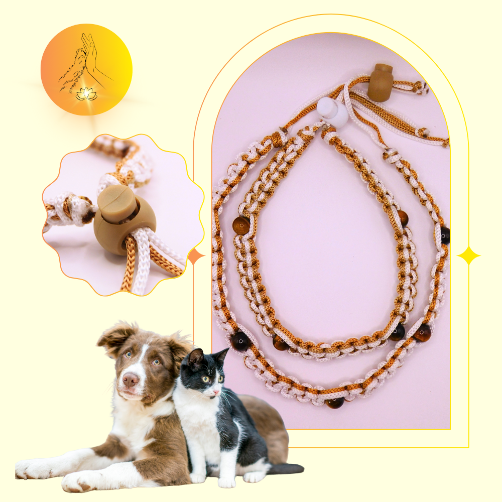 Colliers thérapeutiques en paracorde de couleurs blanc et beige composés de perles d'oeil de tigre de 10mm. Colliers réglables avec un fermoir en plastique.