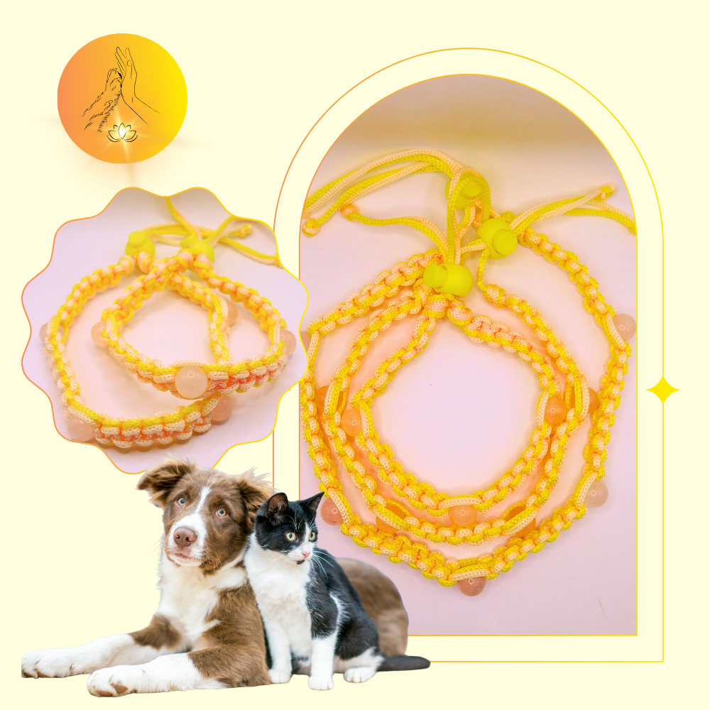Colliers thérapeutiques en paracorde de couleurs jaune et rose pâle et composés de perles de quartz rose de 12mm. Colliers réglables avec un fermoir en plastique.