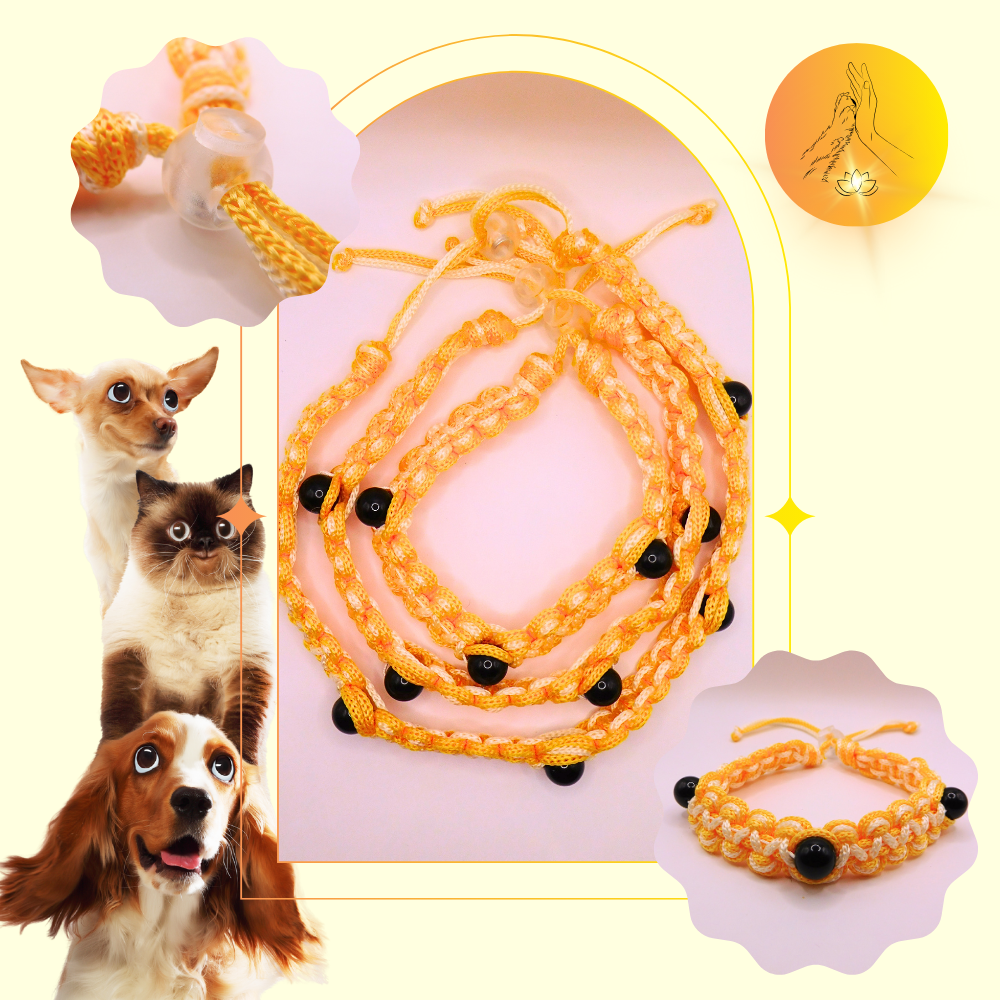 Colliers thérapeutiques en paracorde de couleurs blanc et orange et composés de perles d'obsidienne noire de 12mm. Colliers réglables avec un fermoir en plastique.
