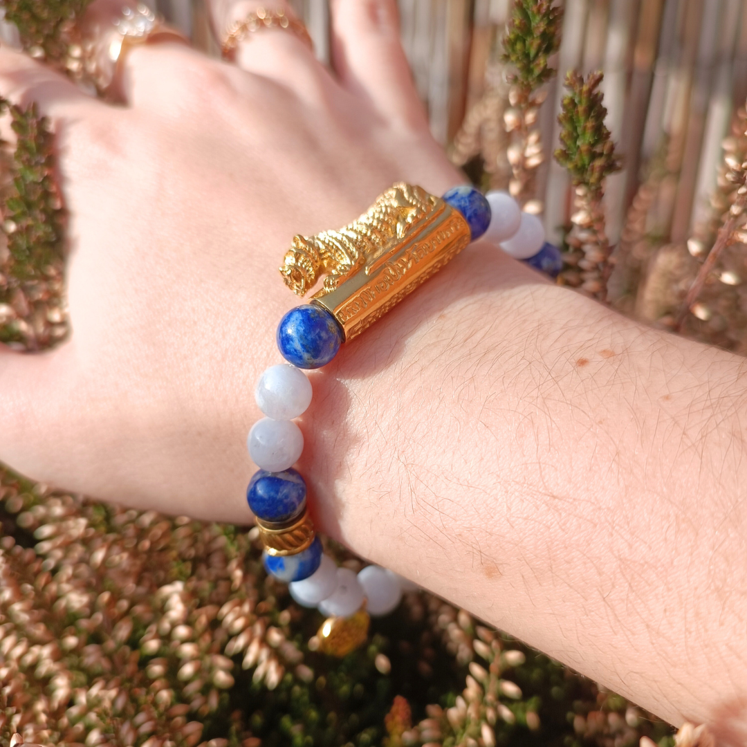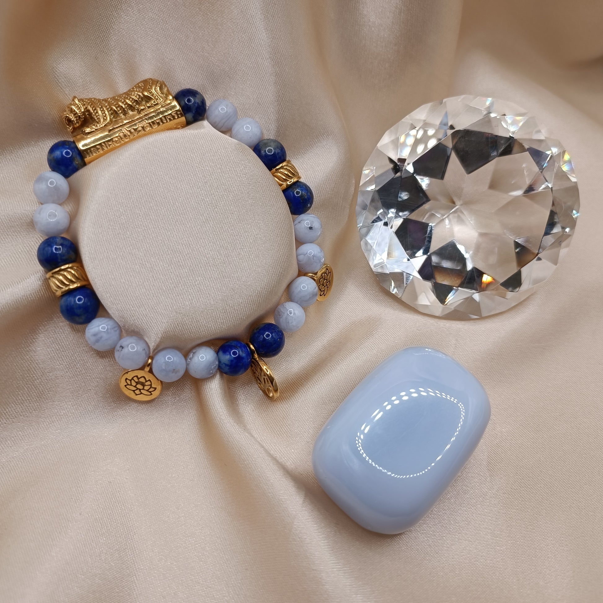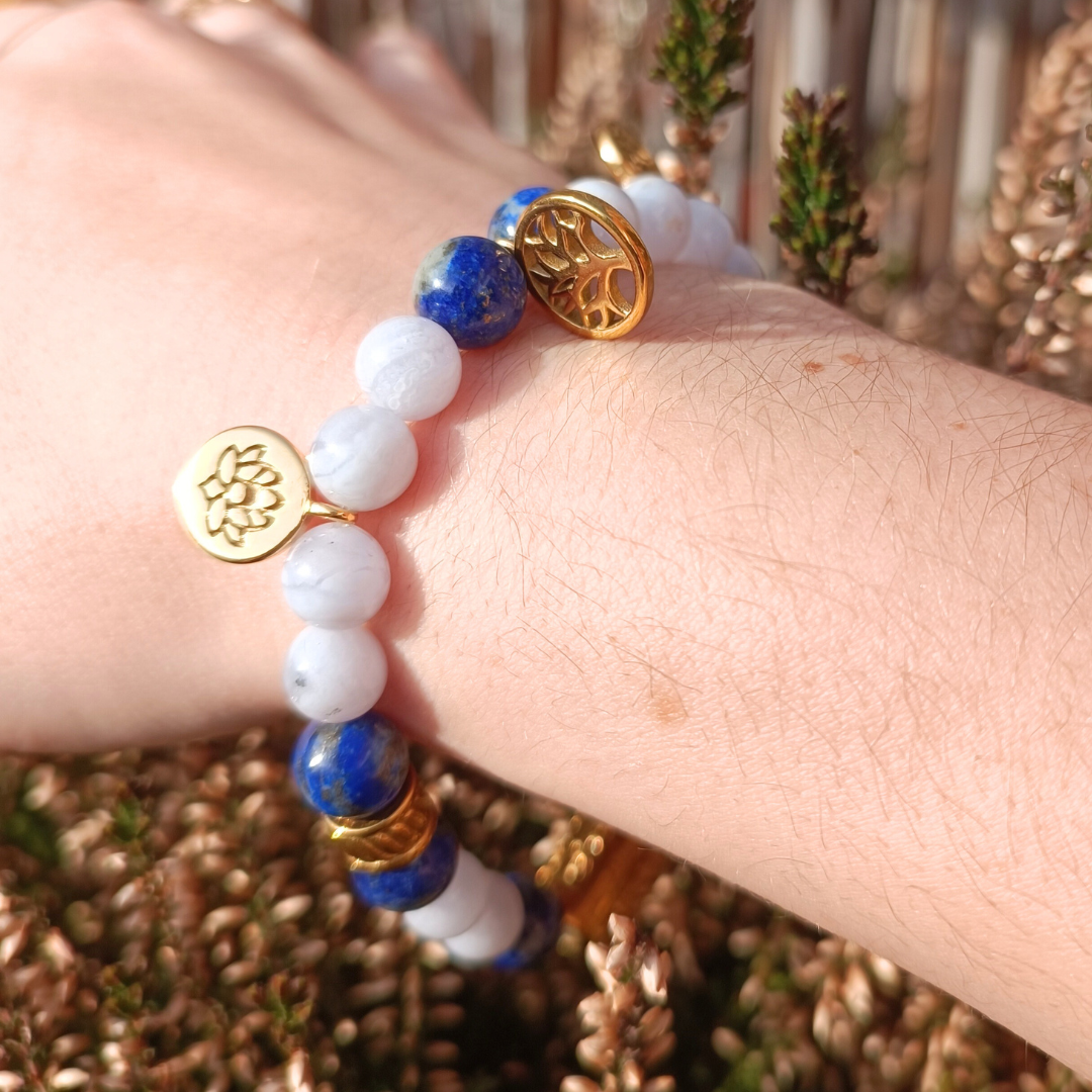 Bracelet en perles de calcédoine bleue et de lapis lazuli de 8 mm