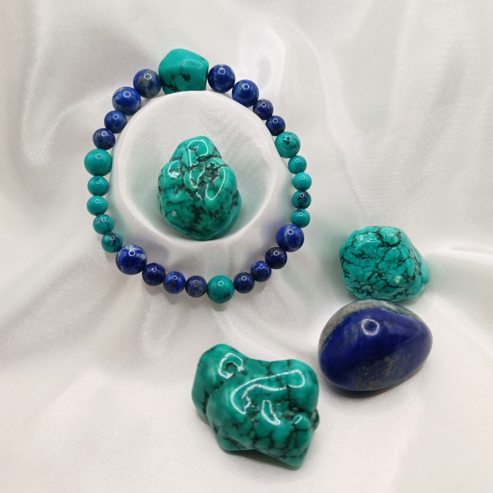 Ce bracelet est composé de perles de Turquoise en 6 et 8 mm, Sodalite en 6 et en 8 mm,