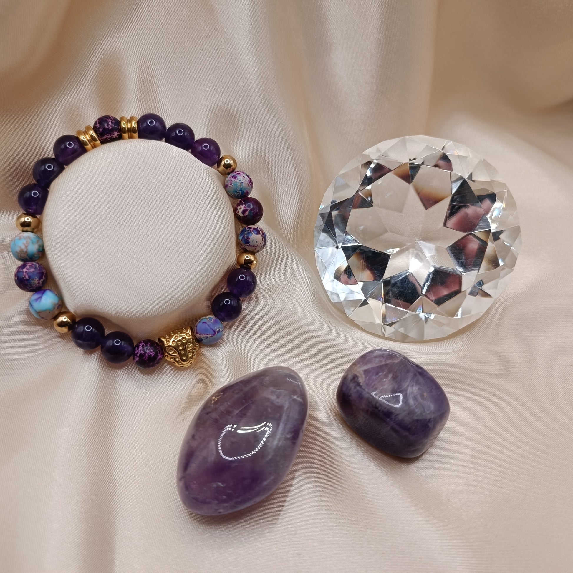 Bracelet en perles de jaspe impérial et d'améthyste de 8 mm.
