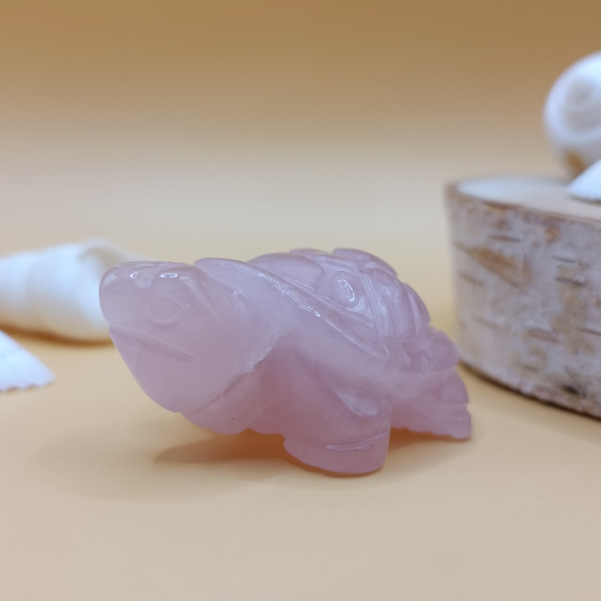 Tortue en pierre de quartz rose d'environ 4 cm / 3 cm